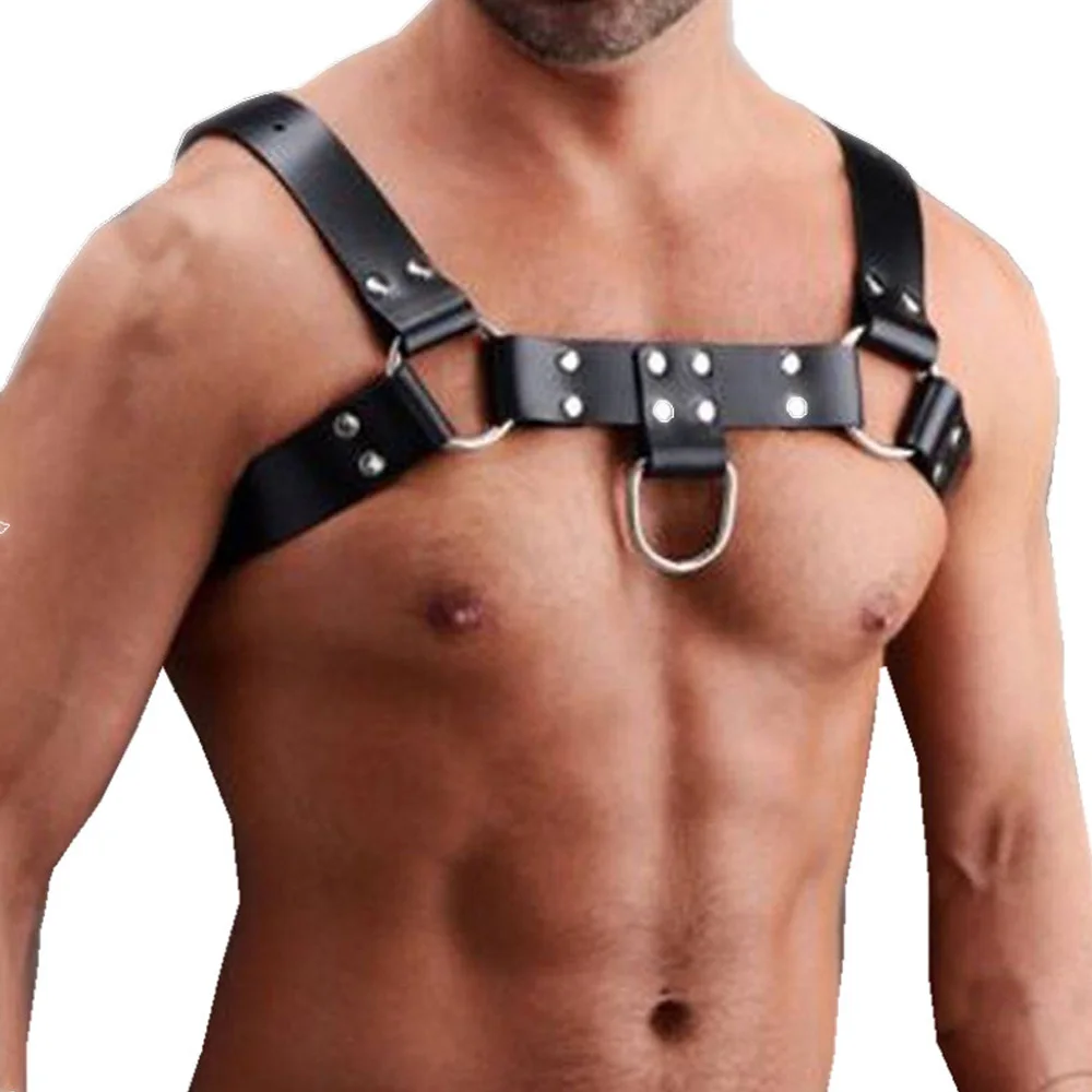 BAFEI Punk Leather Harness Shoulder Slim Belt For Men Sexy Chest Bdsm Bondage Adjustable Muscle O ring Buckles Goth Suspenders|M  81005002512934422