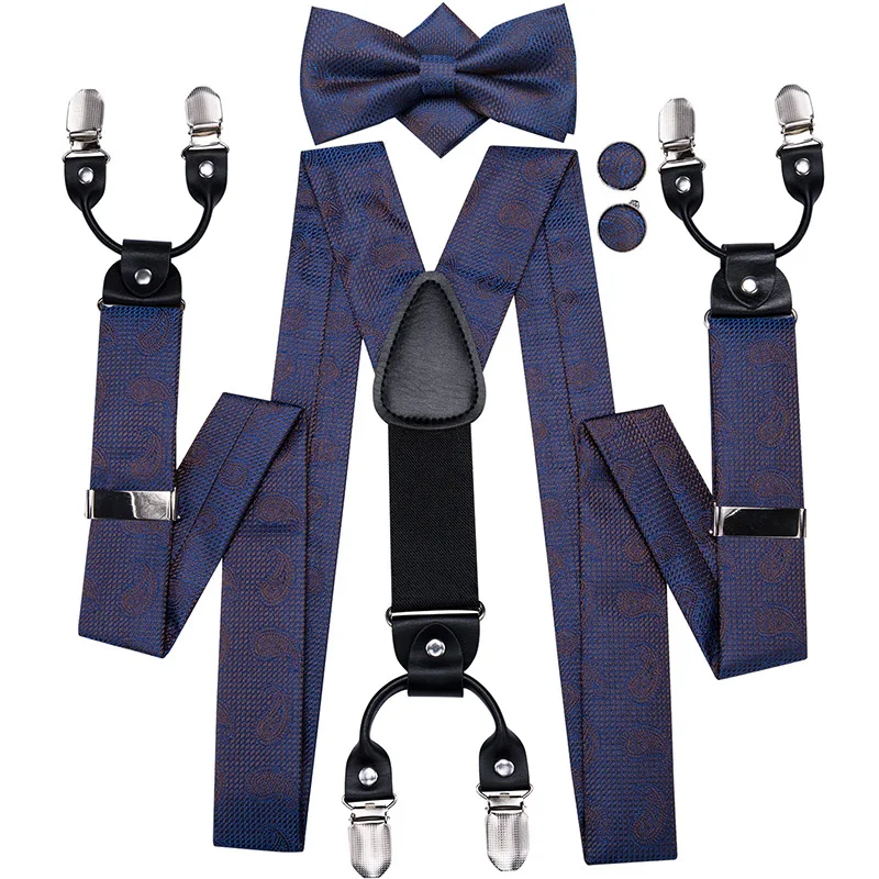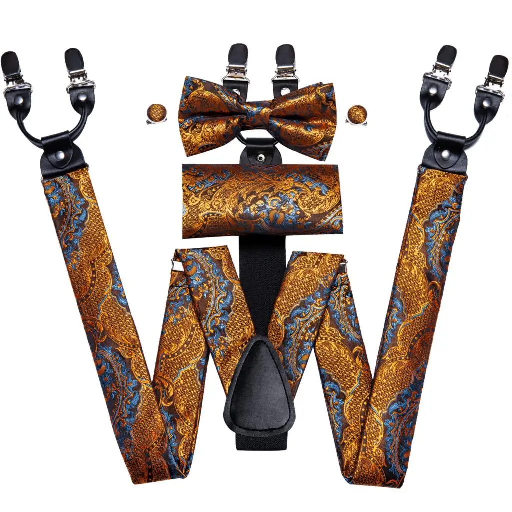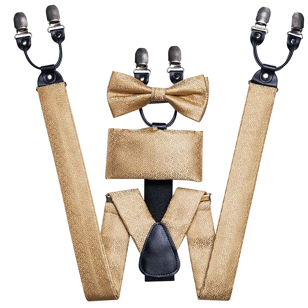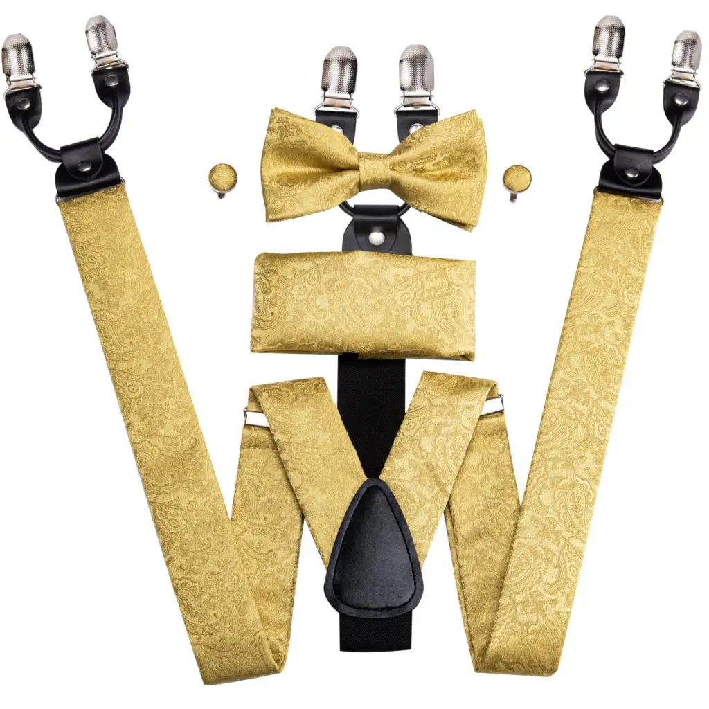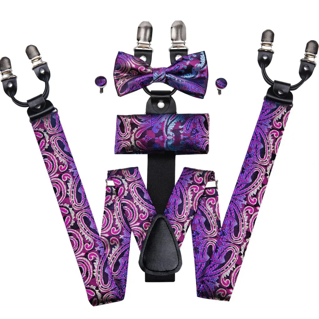 Brand New Silk Men's suspender Bow Tie Pocket Square Cufllilnks Set 6 Clips Men Braces Belt Gold Purple Red Blue High Quali  81005003059934730