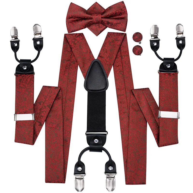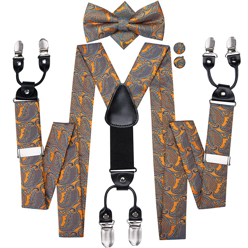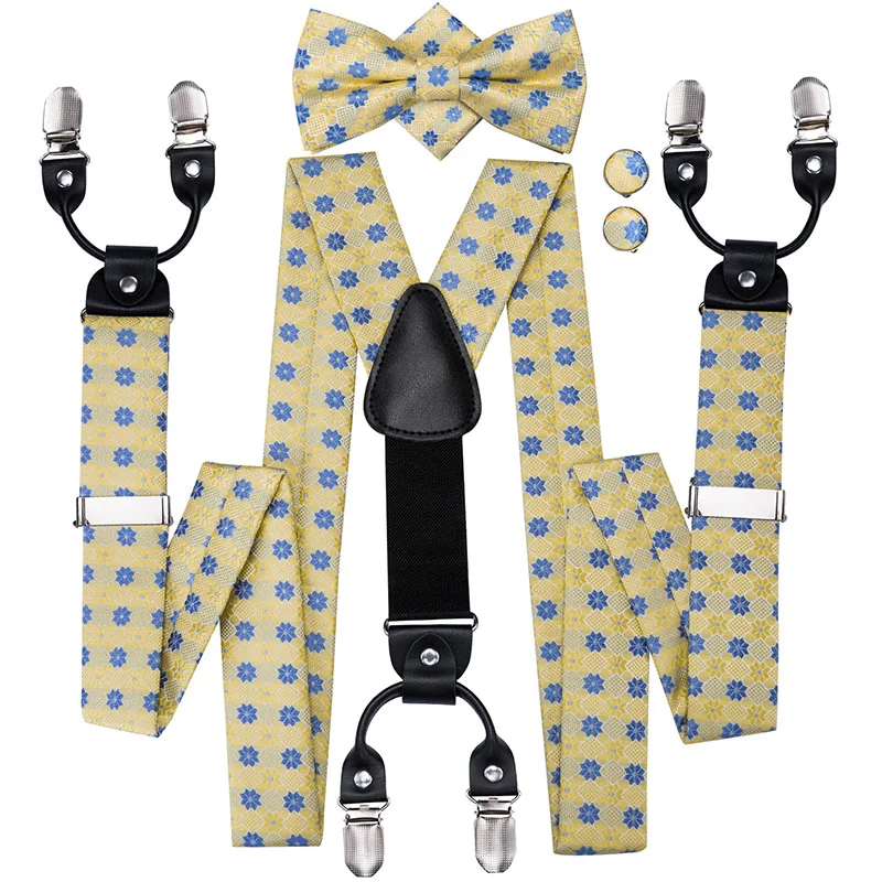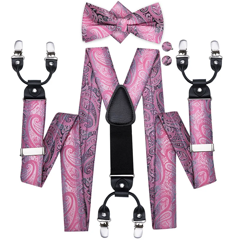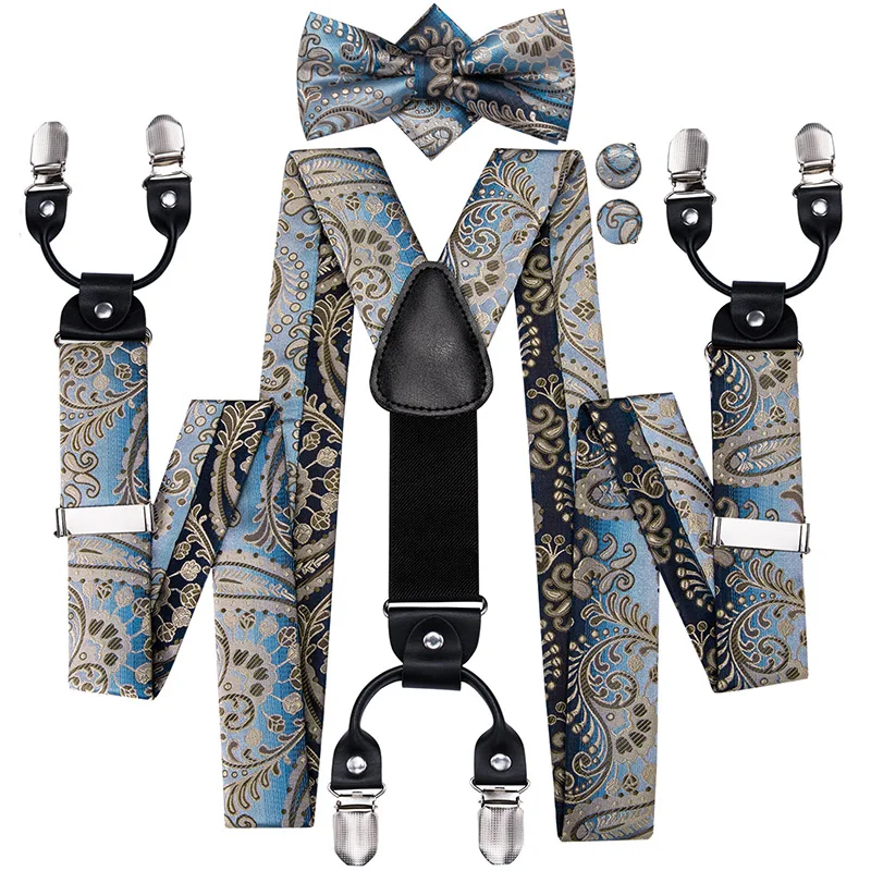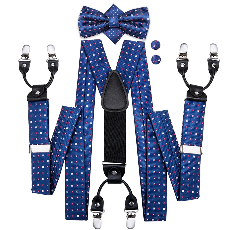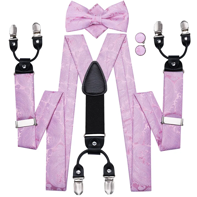 Brand New Silk Men's suspender Bow Tie Pocket Square Cufllilnks Set 6 Clips Men Braces Belt Gold Purple Red Blue High Quali  81005003059934730