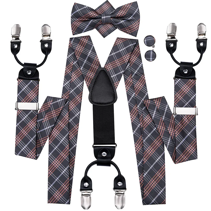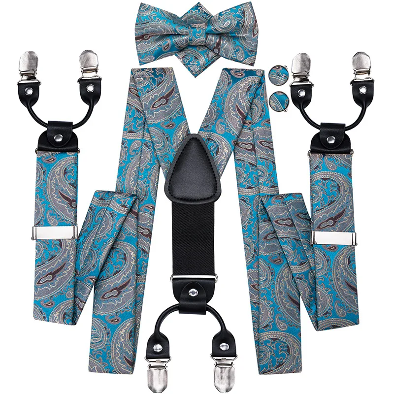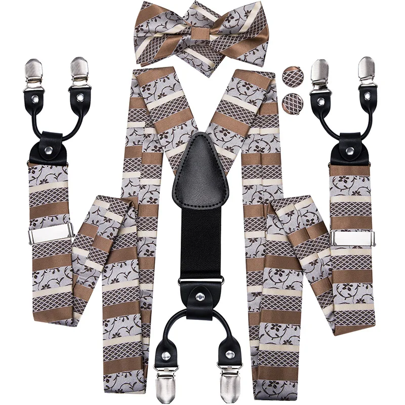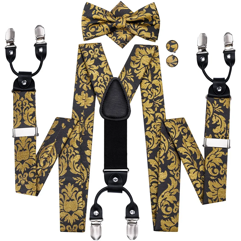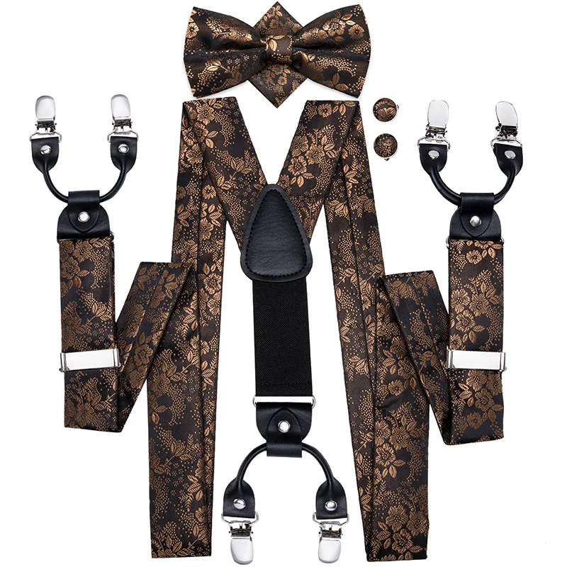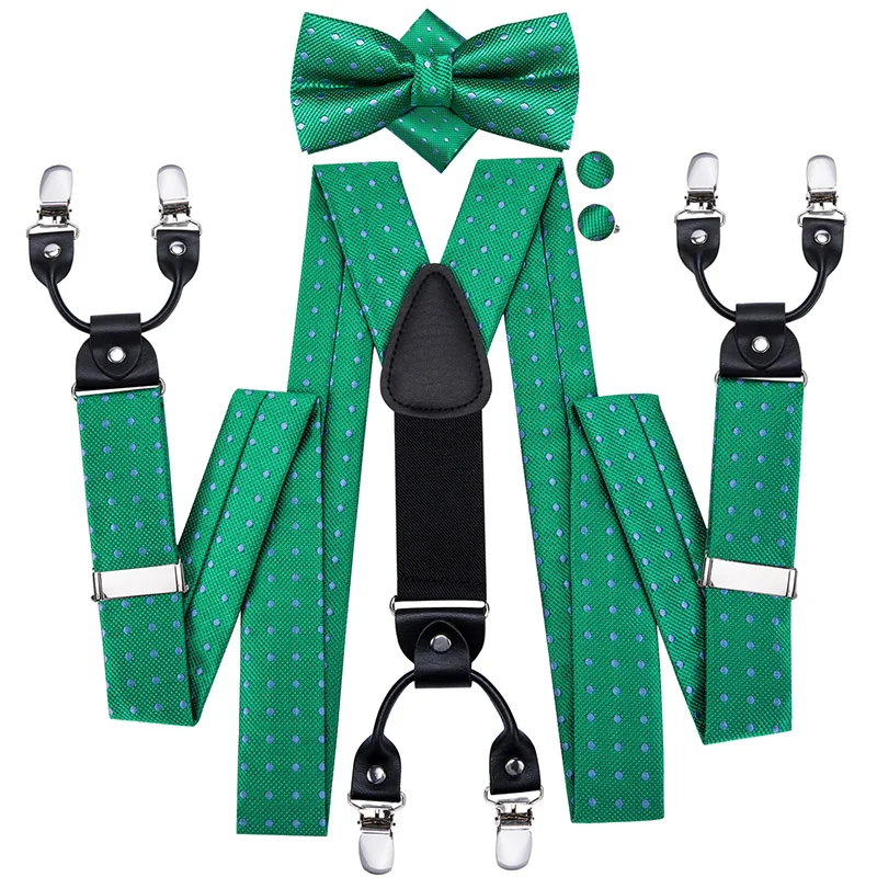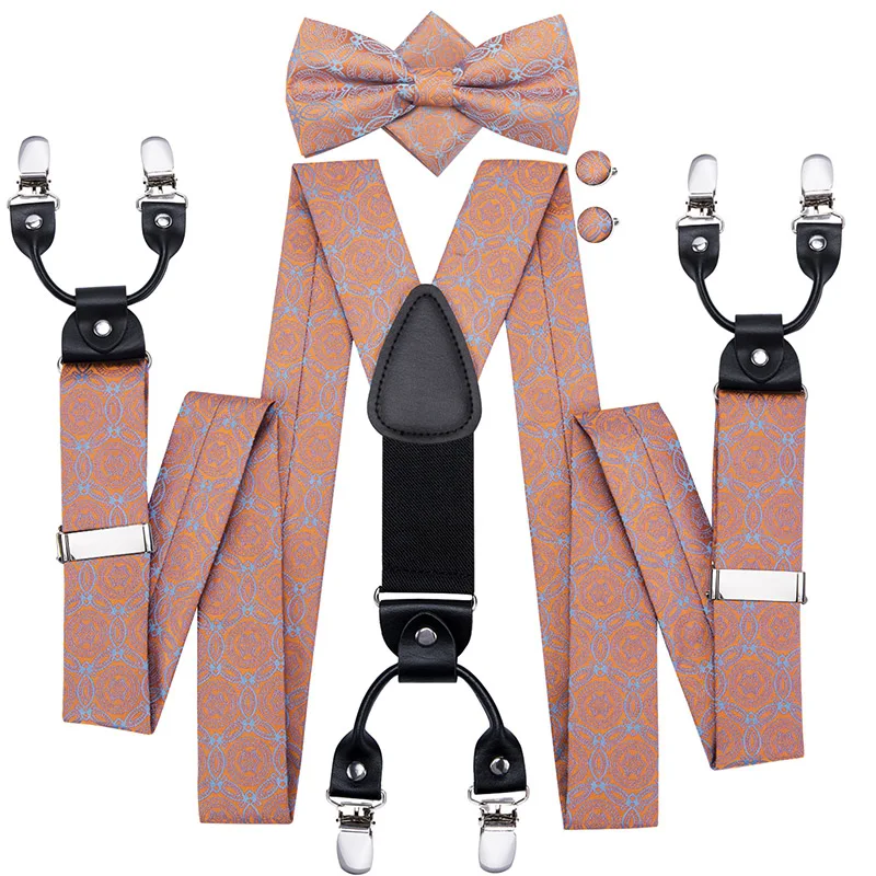 Brand New Silk Men's suspender Bow Tie Pocket Square Cufllilnks Set 6 Clips Men Braces Belt Gold Purple Red Blue High Quali  81005003059934730