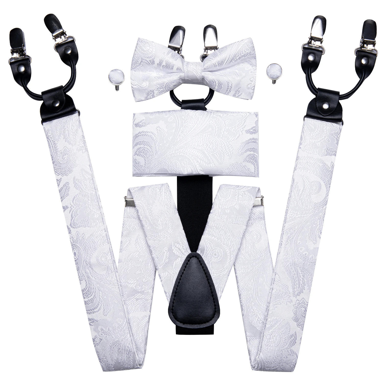 • Attached Bow tie Pocket Square Cufflinks set suspenders