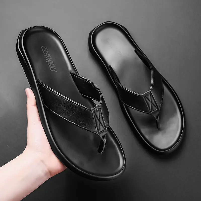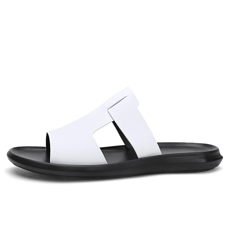 Coslony slippers men leather slides mens luxury brand summer High Quality sandals 2020 slip on lightweight breathable black|Slip