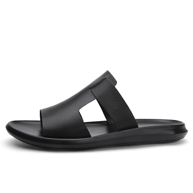 Coslony slippers men leather slides mens luxury brand summer High Quality sandals 2020 slip on lightweight breathable black