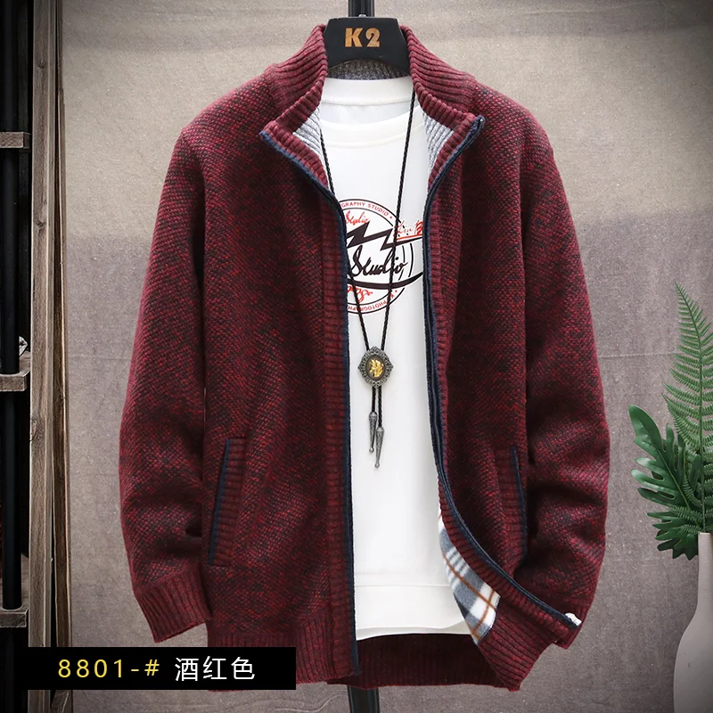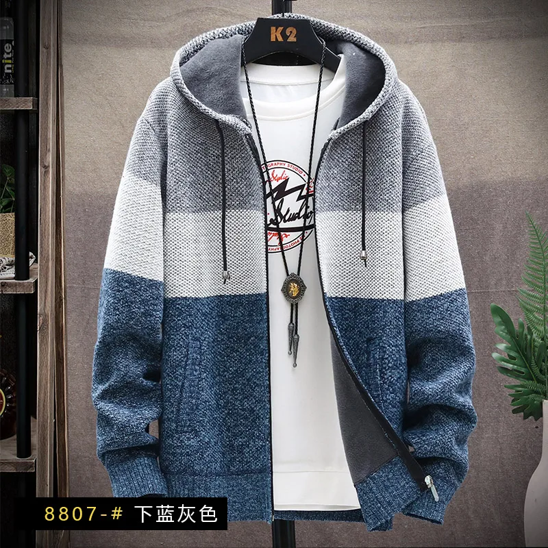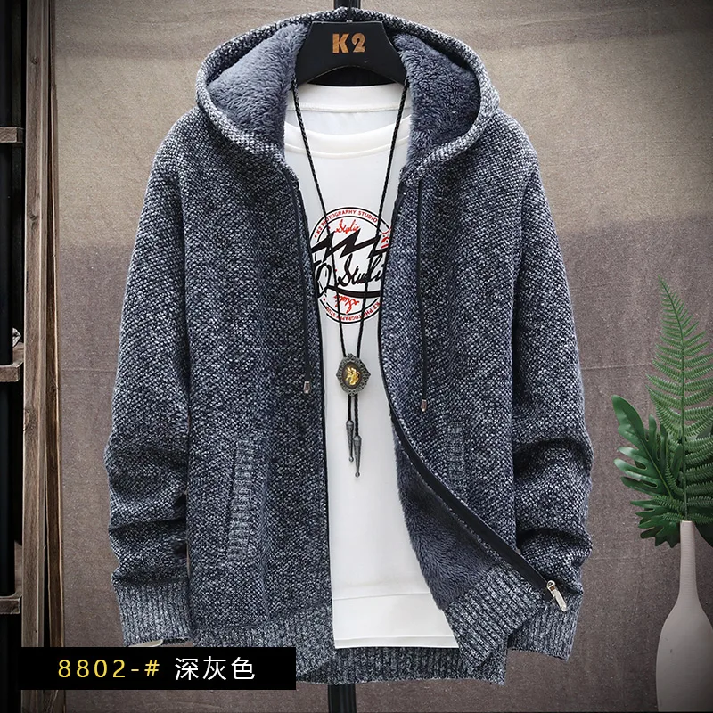 Fall and winter warm hooded sweater plus plush thickened sweater zipper cardigan thick casual jacket new men's clothing|Card  81005002930764668