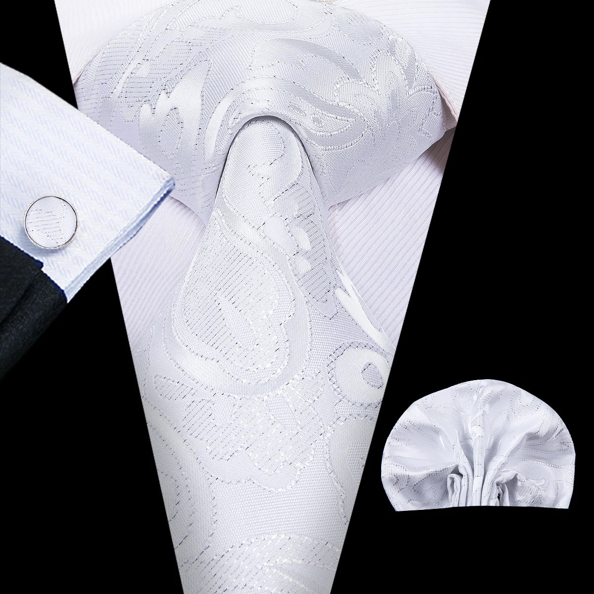 Hi-Tie White Solid Paisley Gift Men Tie Gravata Silk Wedding Tie For Men Hanky Cufflink Set Fashion Design Business Dropshipping
