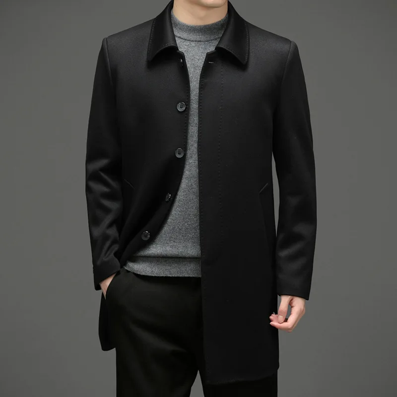 High Quality Wool Coat Men Solid Turn Down Collar Mens Long Coats Smart Casual Jackets Man Overcoats Wool Blends Trench Coat Men  81005003021800760