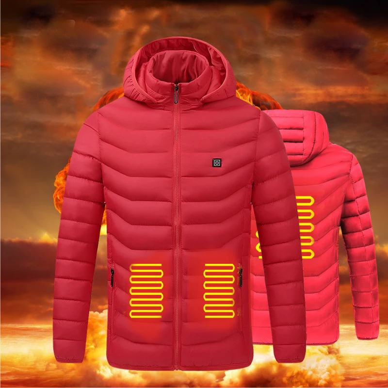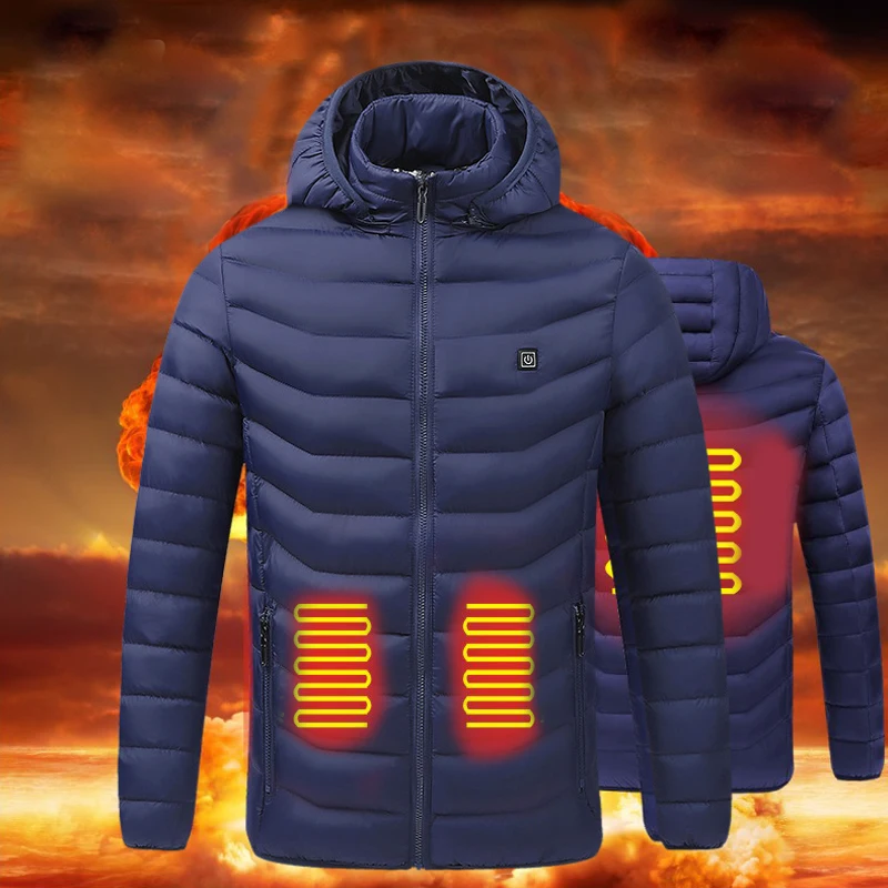 Men 4 Place Heated Winter Warm Jackets USB Heating Padded Jackets Smart Thermostat Pure Color Hooded Heated Clothing Waterproof|  81005003353245434