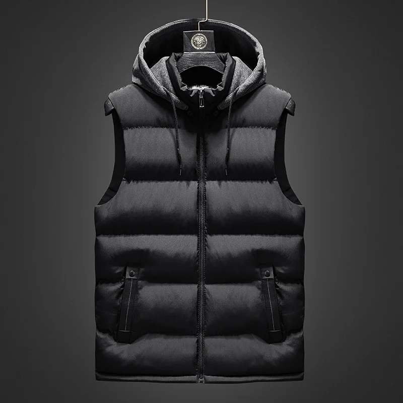 Men Jacket Sleeveless Hooded Vest Winter Fashion Casual Slim Coat Thicken Cotton Cotton Men Vest Men Vest Large Size|Vests &  81005002703252169