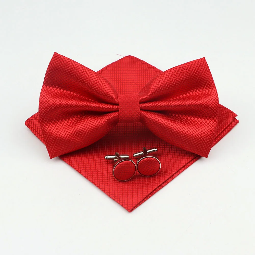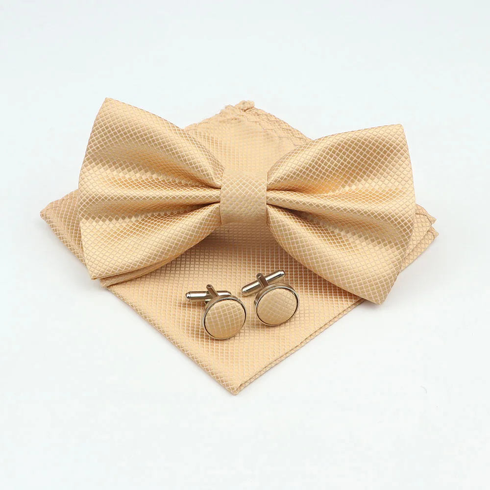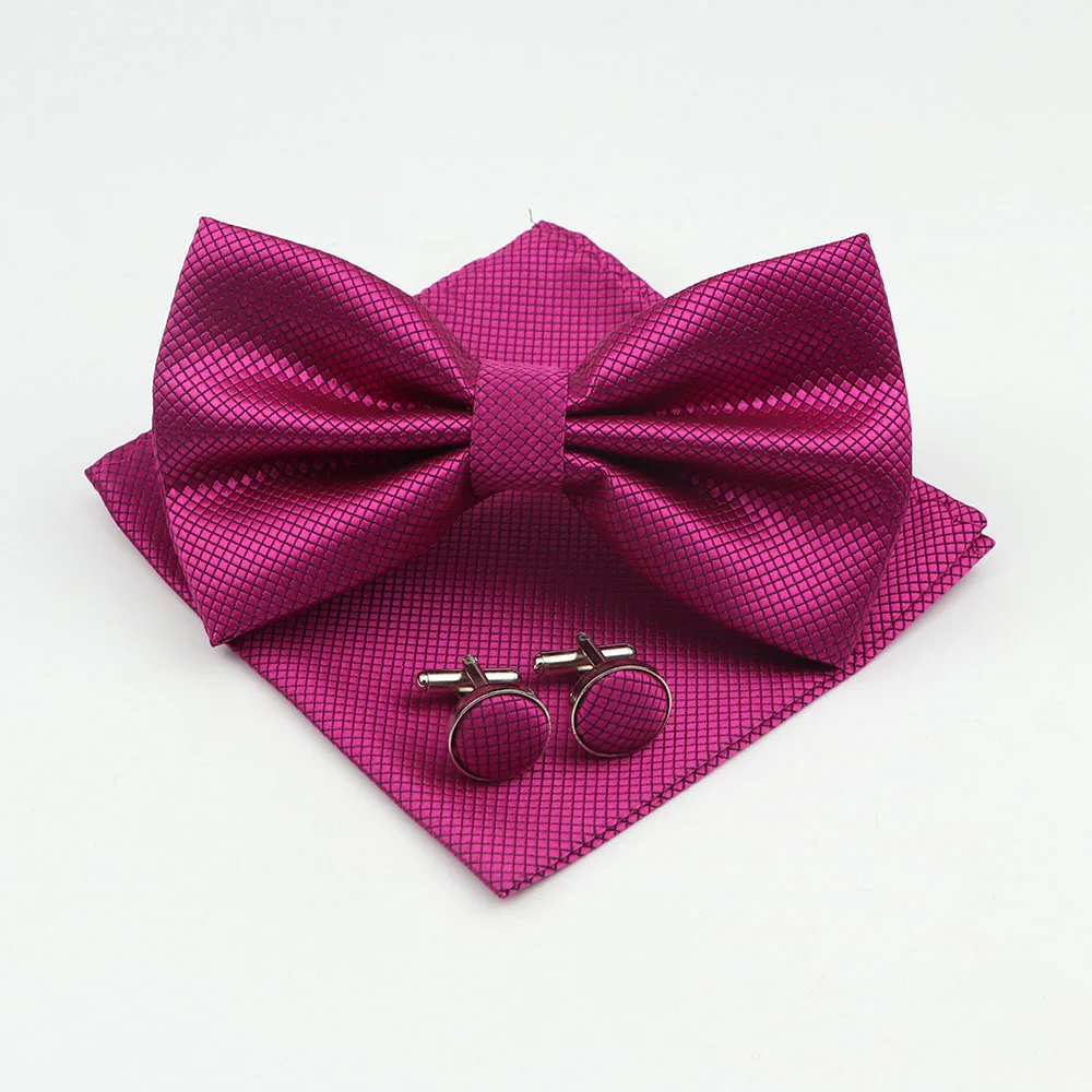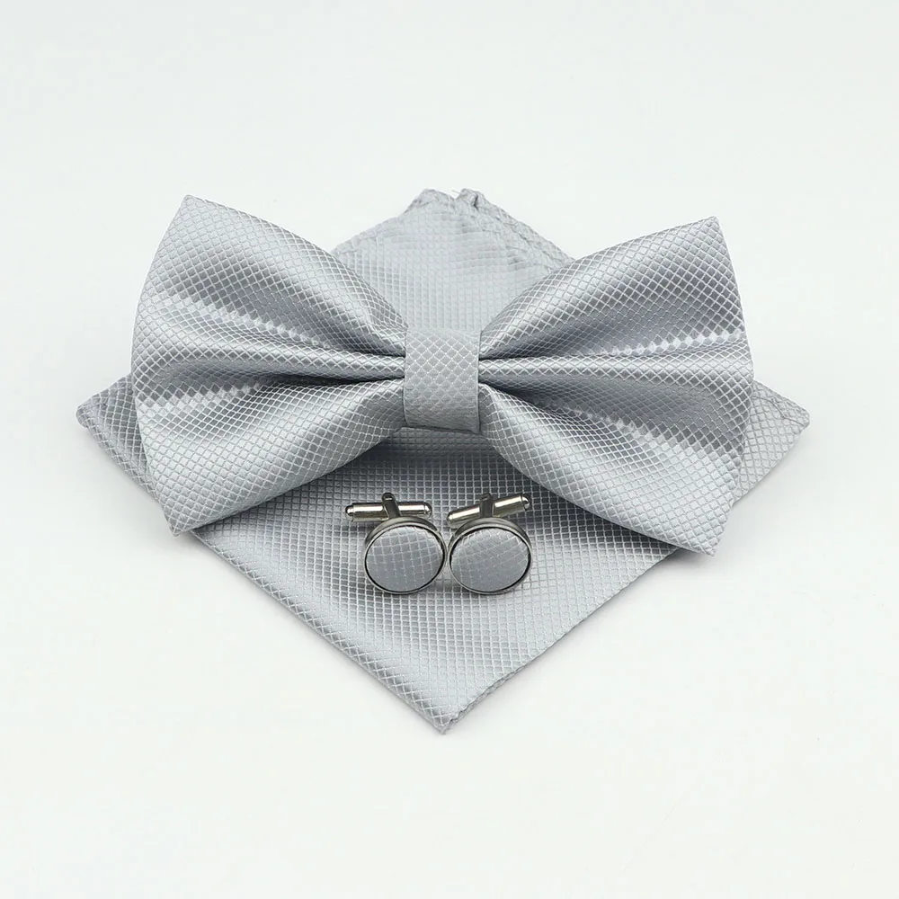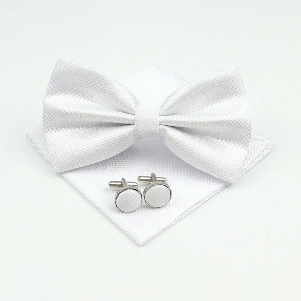 Mens Formal Solid Color Polyester Bowtie Pocket Square Cufflinks Sets Bow Tie Handkerchief Cuff Links Lots Three Piece Set|Men&#  84001233186350