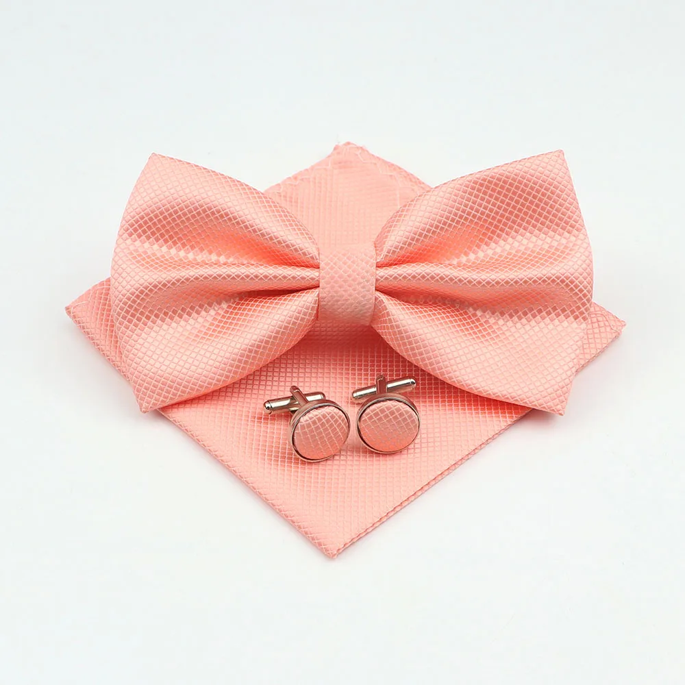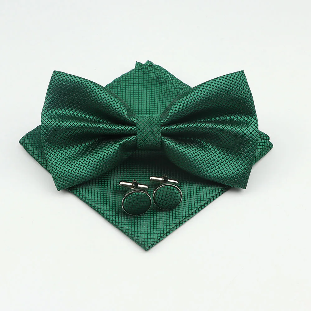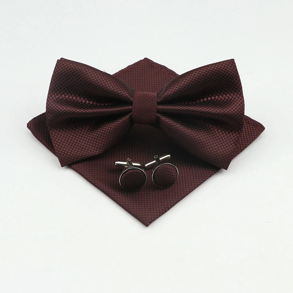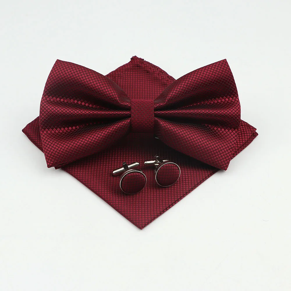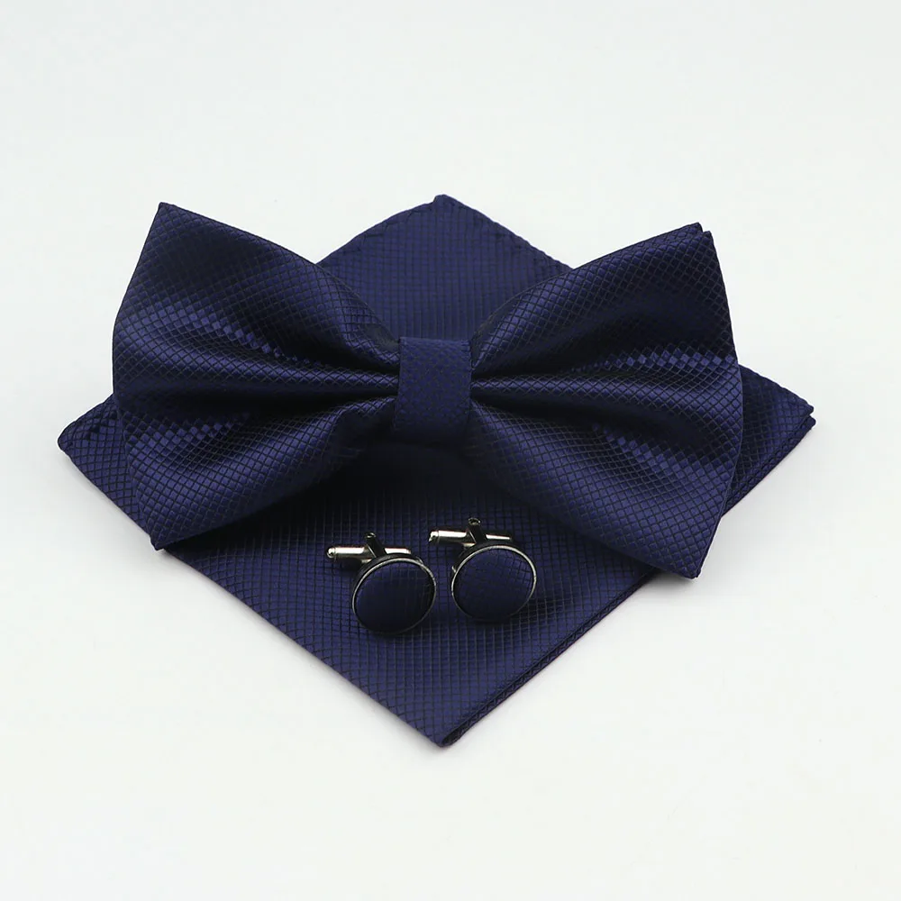Mens Formal Solid Color Polyester Bowtie Pocket Square Cufflinks Sets Bow Tie Handkerchief Cuff Links Lots Three Piece Set|Men&#  84001233186350