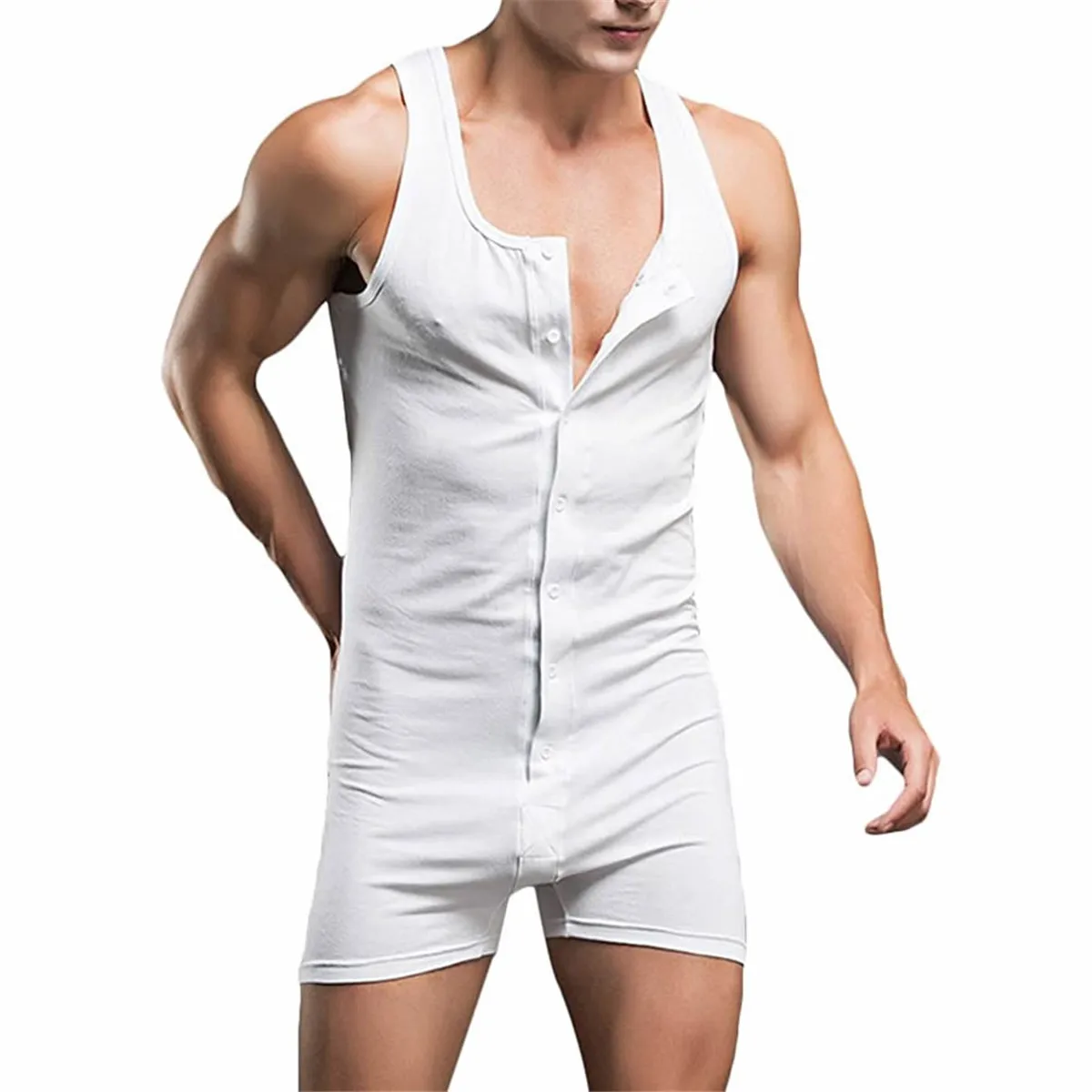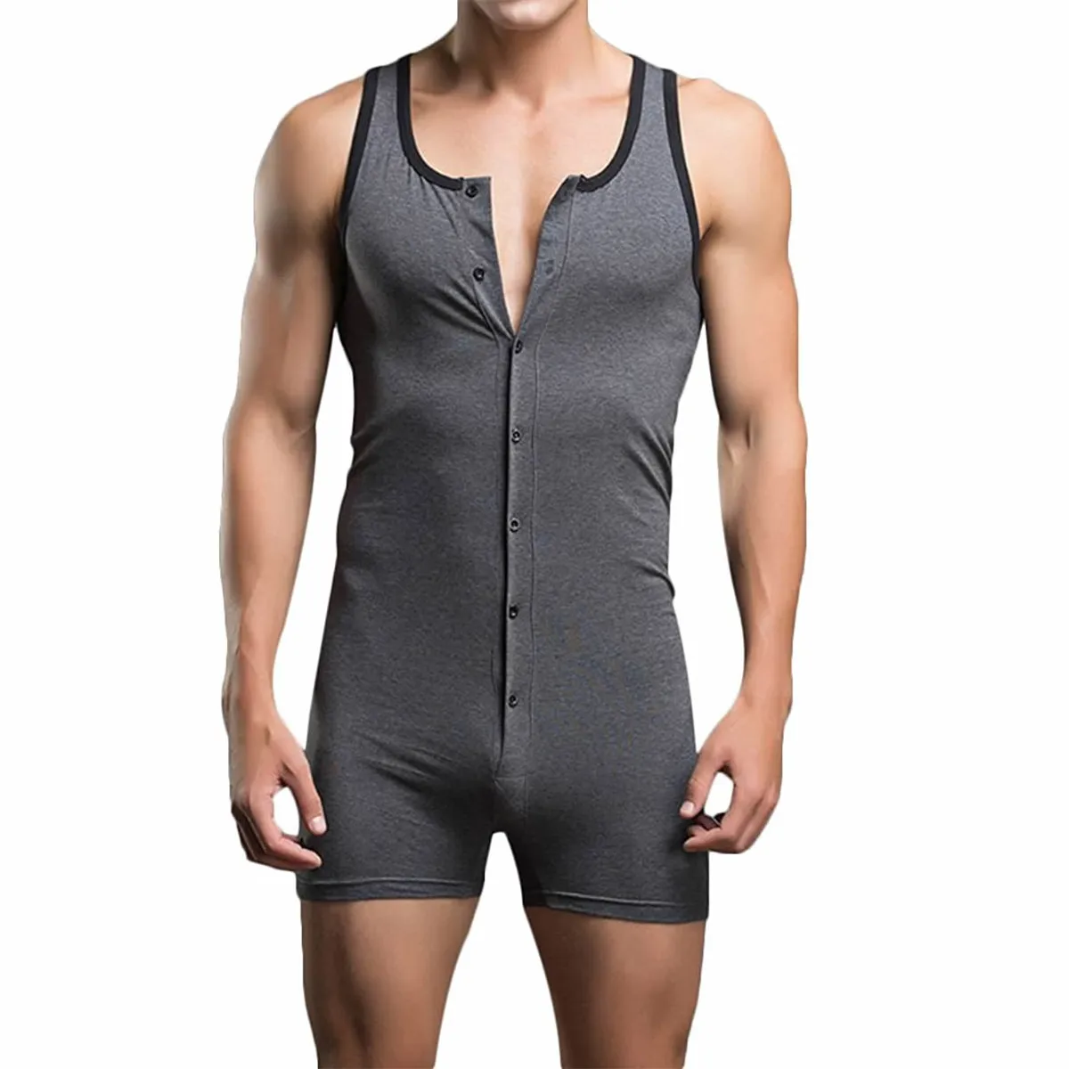 Mens Undershirts Cotton One-Piece Bodysuit Wrestling Singlet Sports Leotard Fitness Jumpsuits Button Men's Vest Boxers Underwear