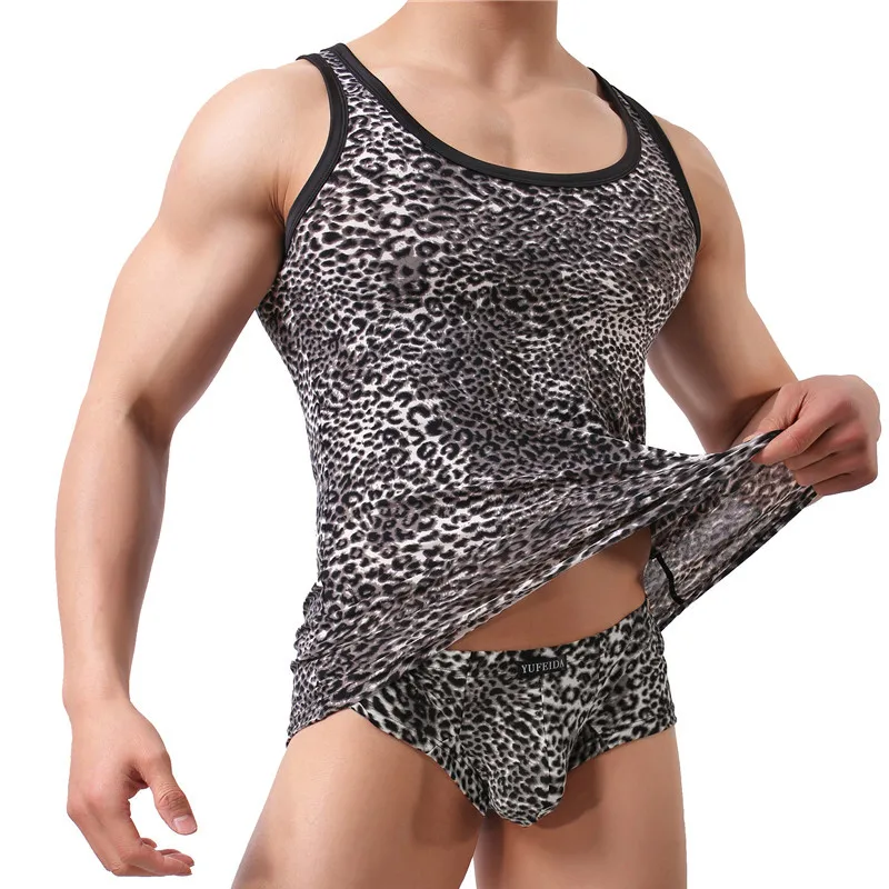 Mens Undershirts Sets Leopard Printed Tank Tops Boxer Shorts Sets Two Piece Workout Sports Gym Underwear Shirts Panties Suits 1Measurement In CM