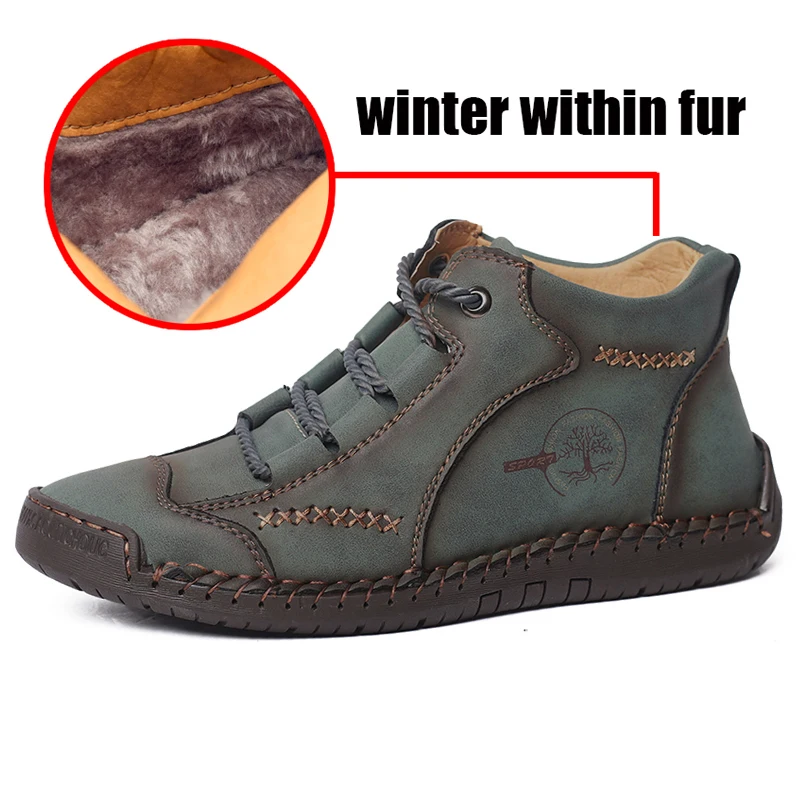 New Leather Men Boots Winter Handmade Ankle Boots Khaki Outdoor Winter Boots Men Casual Leather Shoes Autumn Platform Boots|Basi