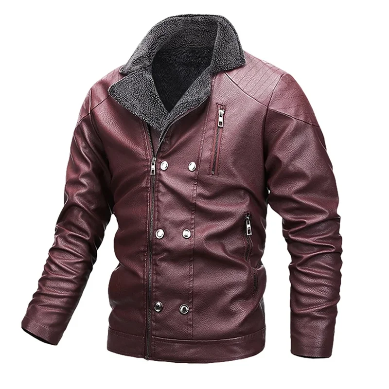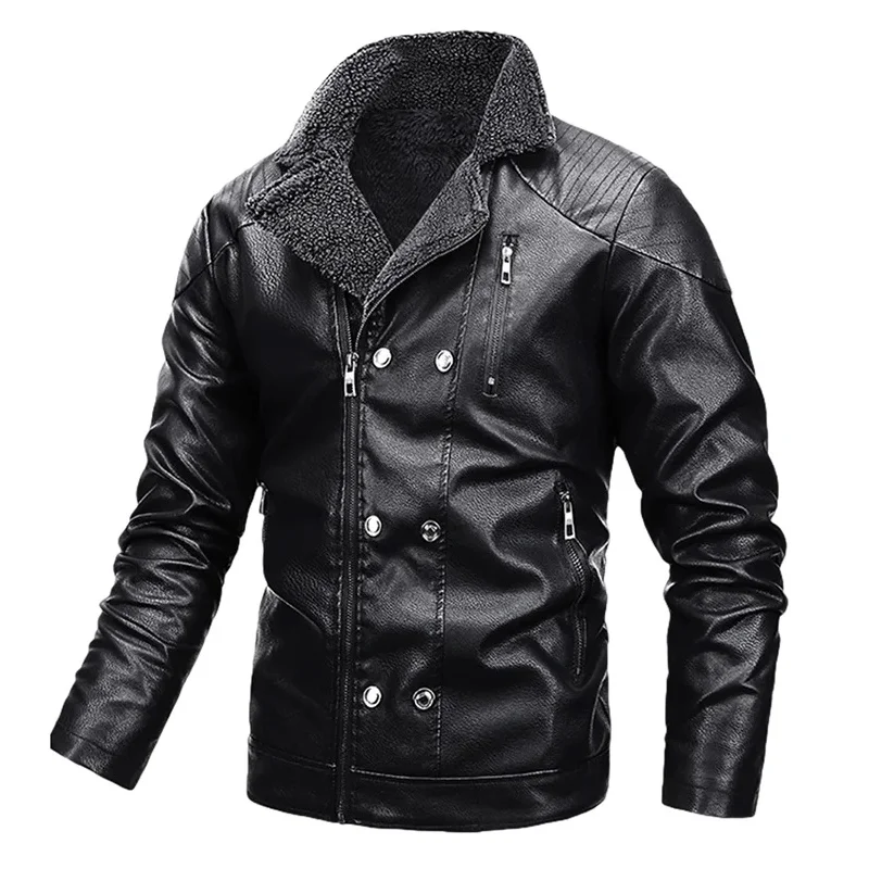 New Men Leather Jacket Fleece Coat Winter Male Casual Thicken Motorcycle PU Jacket Warm Suede Leather Coat Bussiness Clothing|Fa