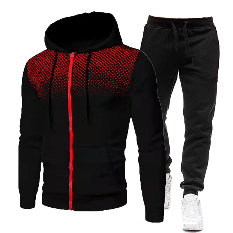 Newest Men Slim Fit Zipper Jacket and Black Pant Set Outdoor Casual Sweatshirt Suits|Men's Sets| - Officematics  81005003451131100