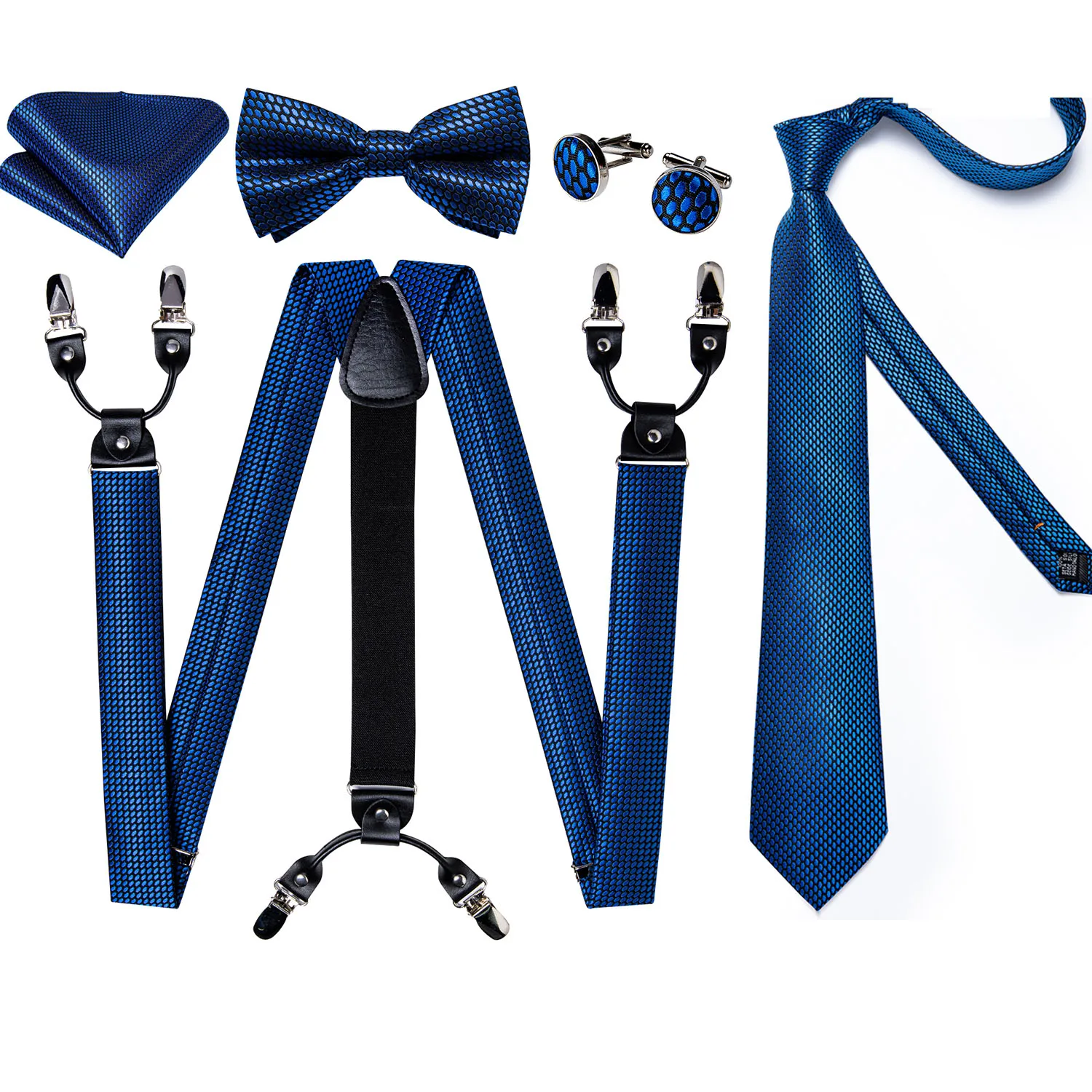 Quality Silk Suspenders Necktie Bow Tie Set For Men Blue Clip on Braces Man Wide Strap For Pants Wedding Party Home Casual 3.5cm  81005003074946035