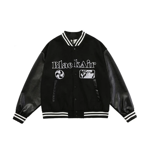 Retro American baseball uniform street men jacket stitching leather sleeves loose Harajuku style couple campus unisex clothes|Ja