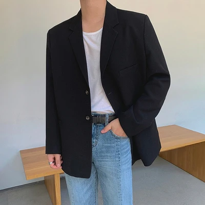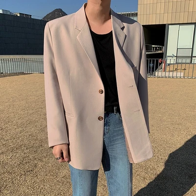 Solid Lapel Men's Suit Korean Loose Long sleeved Single breasted Warm Suit Jacket for Men|Blazers| - Officematics  81005001548078435
