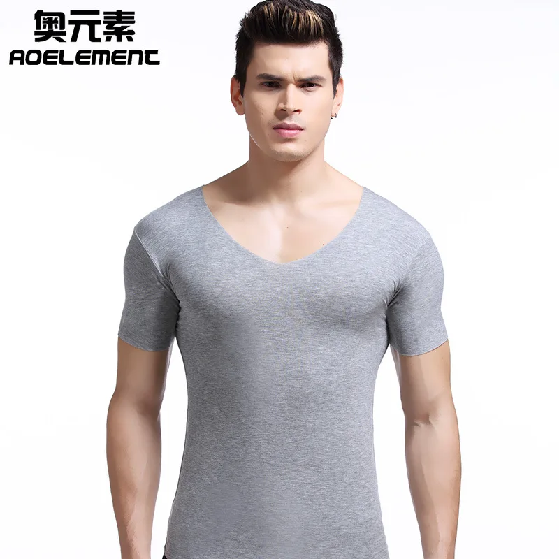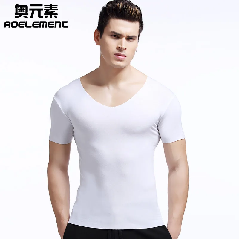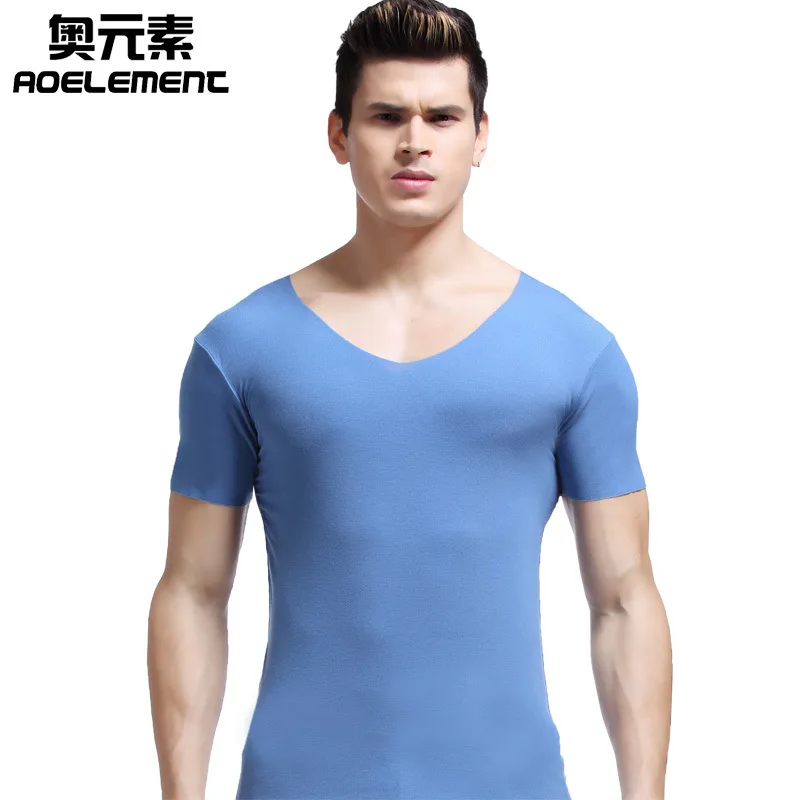 Summer men v neck pure color undershirts tight render unlined upper garment cultivate morality non trace underwear modal shirt|U  84000796187825