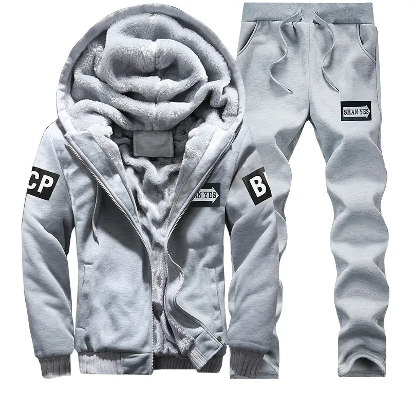 Tracksuit Men Sporting Fleece Thick Hooded Brand Clothing Casual Track Suit Men Jacket+Pant Warm Fur Inside Winter Sweatshirt|sw  832829096254