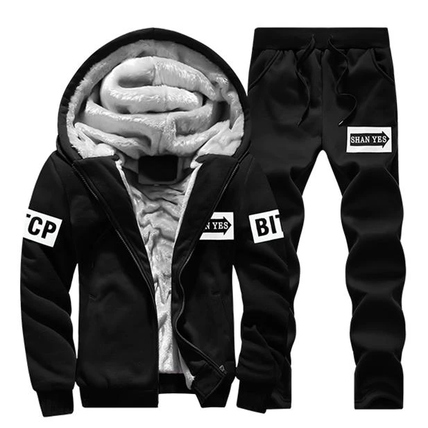 Winter Tracksuits Men Set Casual Thicken Fleece Warm Hooded Jacket Pants Spring Sweatshirt Sportswear Coats Hoodie Track Suits|M  832950211636