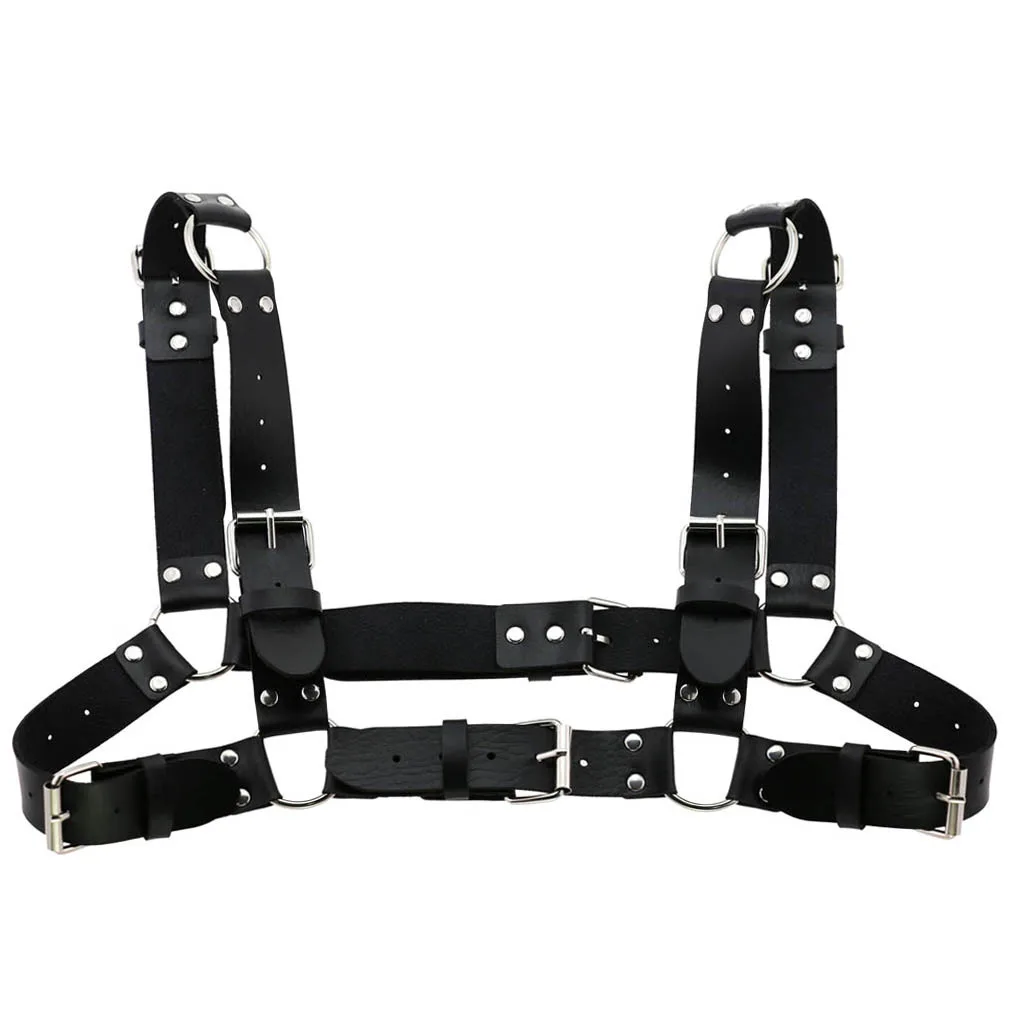 Women Men Sexy Punk Chest Harness Adjustable Caged Metal Body Chain PU Leather Choker Statement Necklace Party Clubwear|Men'